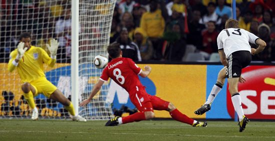 Beijing time on June 27th 22, nineteenth South Africa World Cup 1/8 finals staged peak dialogue. In Bloemfontein, free State Stadium, the German team 4-1 England team strong swept into the quarter finals, England team to create the worst record in the three session of the world cup. Twentieth minutes, then Keluoze goalkeeper Neuer Bigfoot gateball grab shot; thirty-second minutes, Podolsky on the left side of small angle shot Jiangong; thirty-seventh minutes, Upson ball to Gerrard mallet to draw a point; and Lampard goal in the crossed the line in the case of the referee missed. Muller in the second half 3 minutes plums opens two degrees to lock the victory.
