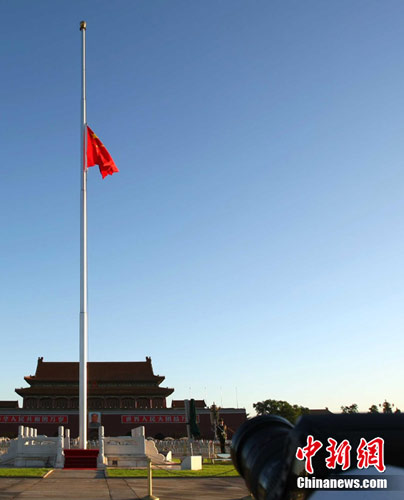 Express: The flag in Tiananmen square is lowered at half and no public entertainment is allowed
