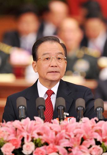 Hu Jintao, Wen Jiabao, Jia Qinglin, Li Changchun, Xi Jinping, Li Keqiang, He Guoqiang, Zhou Yongkang and Congress Presidium members were seated on the rostrum.