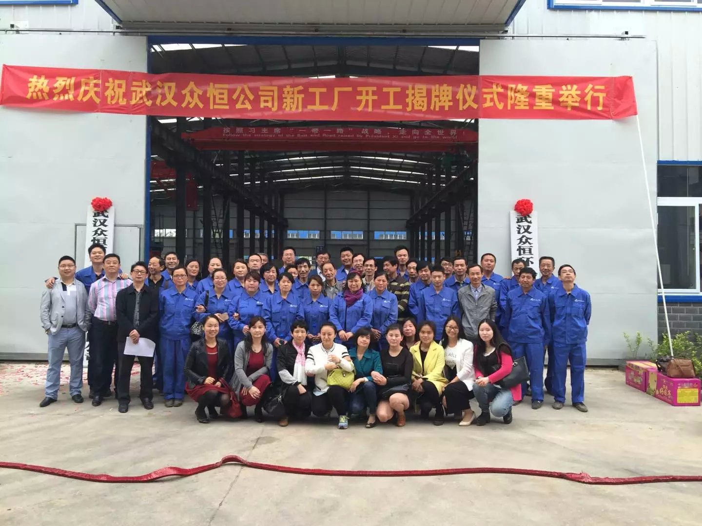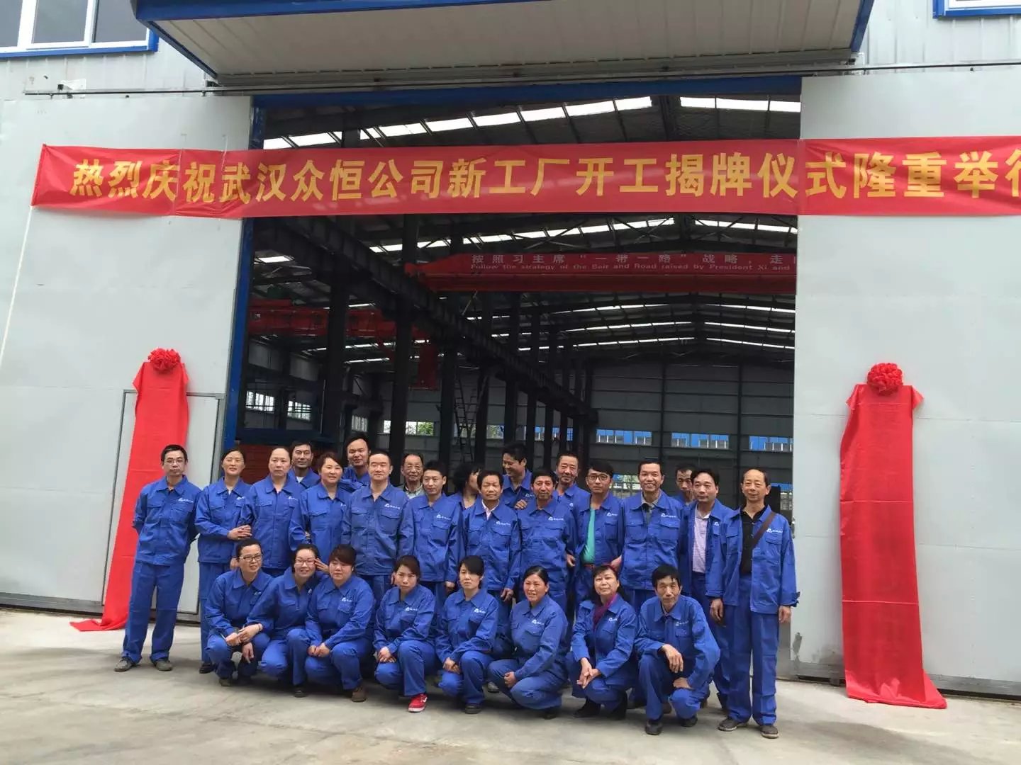 2016年4月26日上午10點(diǎn),武漢眾恒隆重舉行新工廠(chǎng)揭牌開(kāi)工儀式,外來(lái)嘉賓及公司員工到場(chǎng)觀(guān)禮,今年是公司成立的第十二年,新廠(chǎng)房揭牌開(kāi)工儀式預示著(zhù)公司新的開(kāi)始,在此,希望公司全體員工再接再厲,再創(chuàng )輝煌,同時(shí)要感謝各屆人士到場(chǎng)觀(guān)禮和對我公司的大力關(guān)心、支持。下圖為公司部分員工合影)