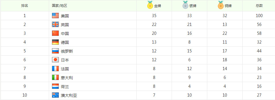 快訊 2016年巴西里約奧運會(huì )金牌數排行榜發(fā)布!