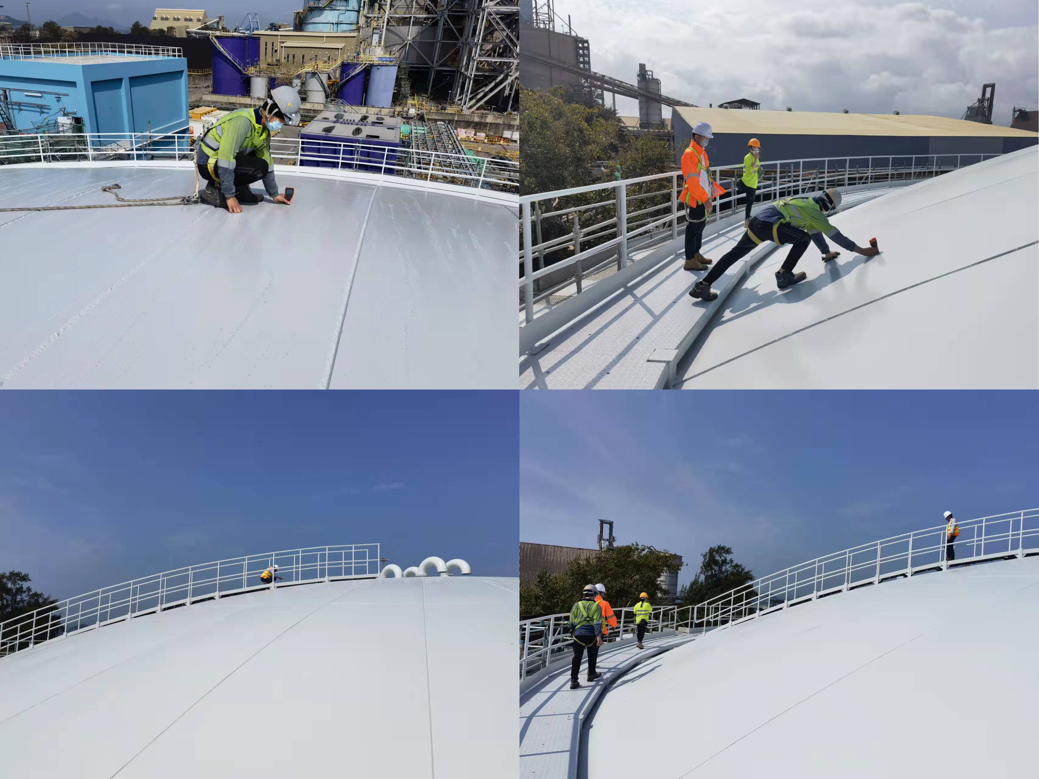 喜訊 我司承建的香港青山電廠(chǎng)7000m³工藝水箱外部油漆順利驗收!近日,業(yè)主及監理方均抵達現場(chǎng)對水箱外部油漆進(jìn)行最終驗收工作。業(yè)主及監理方對工藝水箱外壁油漆干膜厚度,油漆粗糙度,焊縫接口處補漆等各方面進(jìn)行驗收檢驗。檢驗工作完成后,業(yè)主及監理方對我方工程完成質(zhì)量及合格率表達了高度的贊揚和肯定。后續將進(jìn)行工藝水箱波浪紋油漆的噴涂工作,希望現場(chǎng)項目組延續以往良好的工程質(zhì)量,為后期合作創(chuàng )造機會(huì )、奠定基礎!