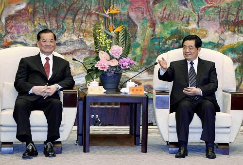 新華社上海4月29日電(記者 張勇)中共中央總書(shū)記胡錦濤29日下午在上海西郊賓館會(huì )見(jiàn)了中國國民黨榮譽(yù)主席連戰、吳伯雄和親民黨主席宋楚瑜等應邀出席上海世博會(huì )開(kāi)幕式的臺灣各界人士。胡錦濤強調,要繼續增進(jìn)兩岸政治互信,不斷增強兩岸關(guān)系和平發(fā)展的推動(dòng)力;要繼續擴大兩岸各界交流,不斷激發(fā)兩岸關(guān)系和平發(fā)展的生命力;要繼續深化經(jīng)濟合作,不斷提高兩岸經(jīng)濟的競爭力;要繼續推動(dòng)兩岸關(guān)系和平發(fā)展,不斷增強中華民族的凝聚力。