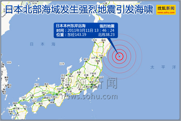 據日本氣象廳觀(guān)測,地震發(fā)生在當地時(shí)間11日14時(shí)46分(北京時(shí)間13時(shí)46分),震中位于宮城縣以東的太平洋海域。